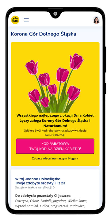 Kupon będzie dostępny dla wszystkich Pań, które są już z nami oraz tych, które dołączą do Korony Gór Dolnego Śląska do dnia 09.03.2026.