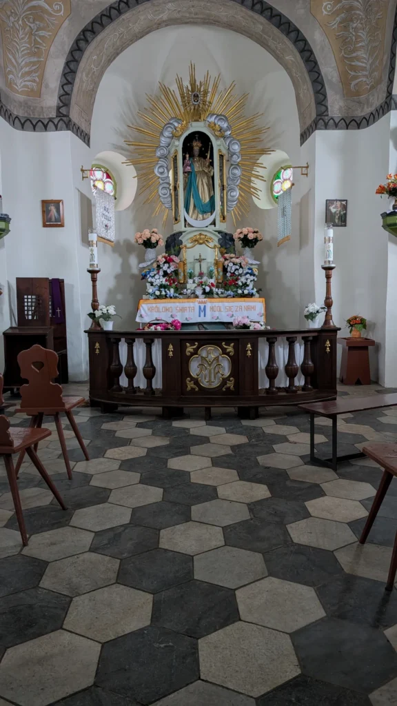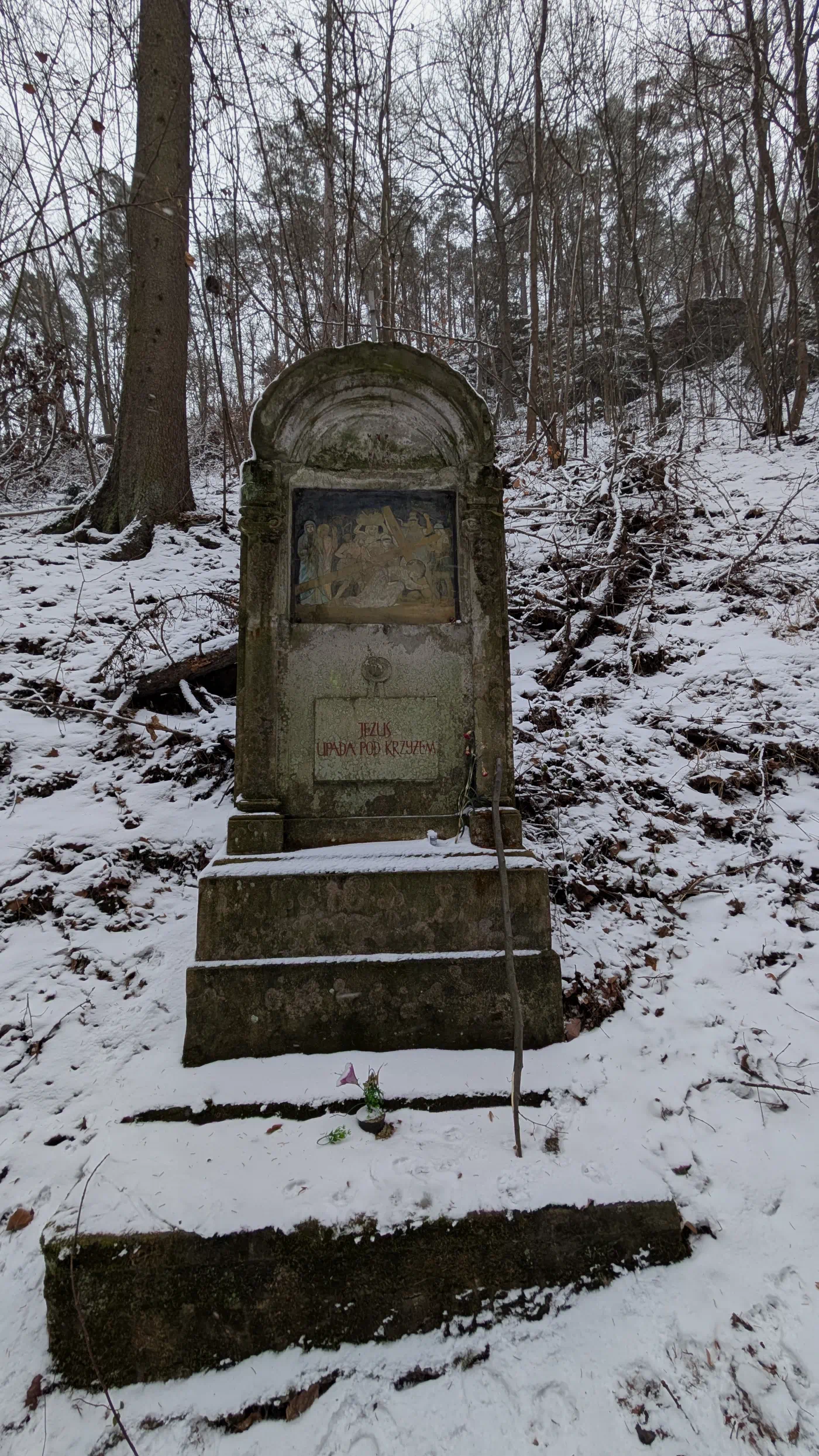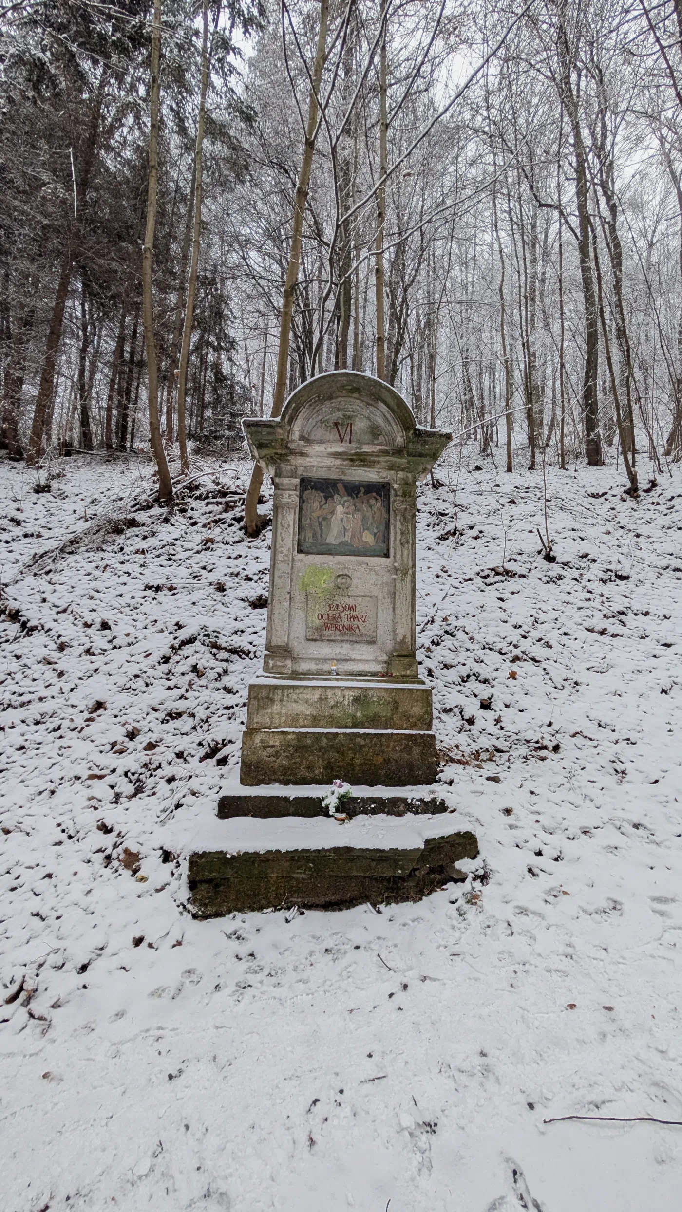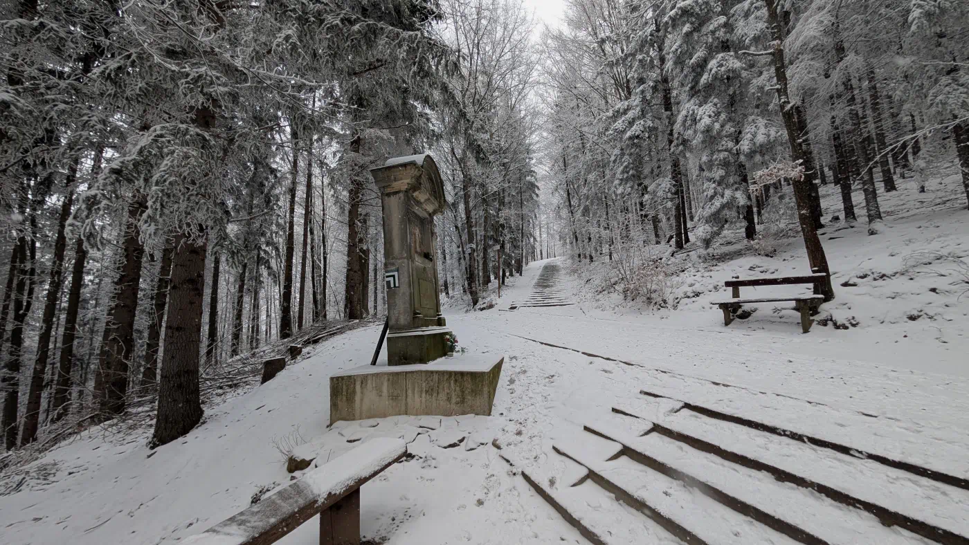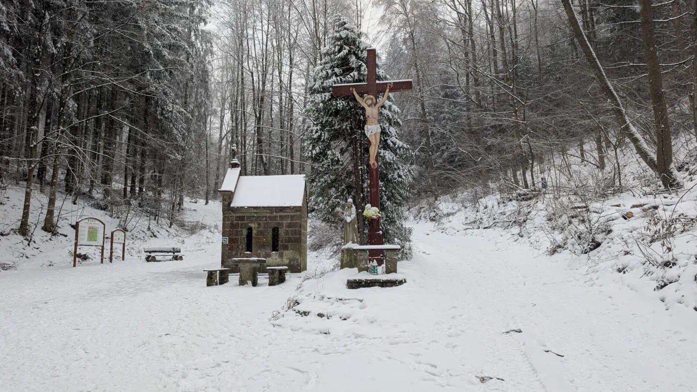 Ruszamy i zaraz za parkingiem skręcamy w prawo kierując się niebieskim szlakiem do góry. Już na początku napotkamy pierwszą klasycystyczną budowlę stacji drogi krzyżowej. Te klasycystyczne stacje stacji Drogi Krzyżowej powstały w latach 1833–1839. Zostały ufundowane i wybudowane przez proboszcza bardańskiego — ks. Franciszka Müllera. Dziś mimo że trochę już zaniedbane stanowią wspaniałe świadectwo historii, religii oraz sztuki naszego regionu.