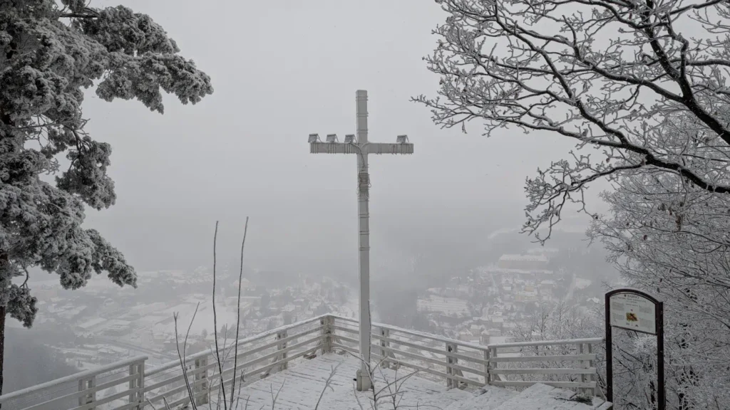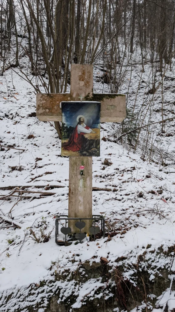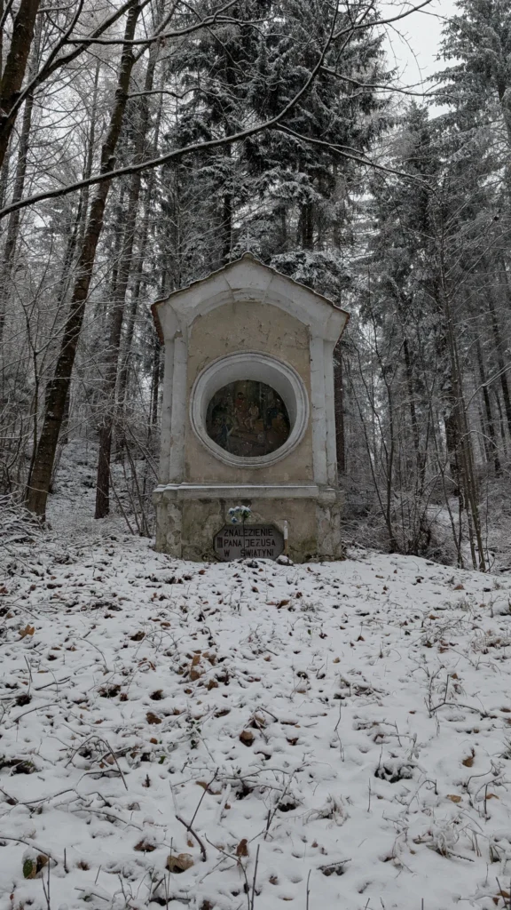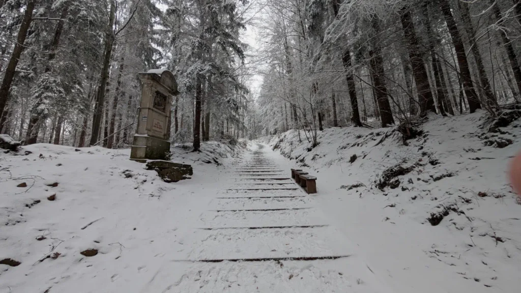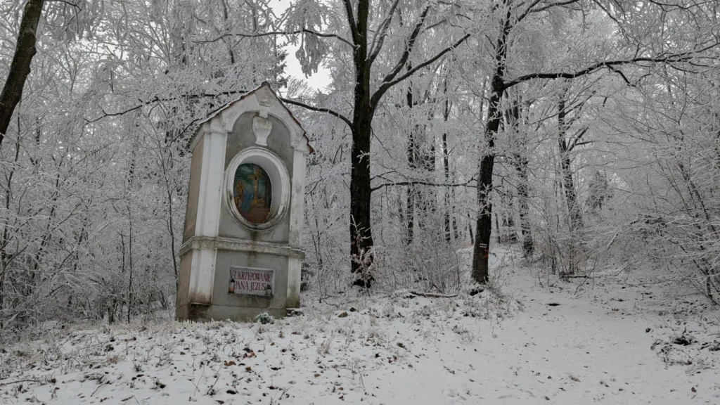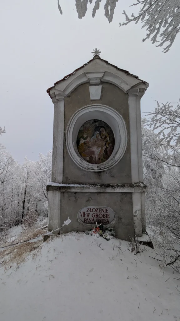 Po krótkim odpoczynku i nasyceniu się widokami ruszamy dalej. W tym miejscu mamy dwie opcje. Pierwsza to powrót do skrzyżowania ze szlakiem niebieskim, z którego zeszliśmy i kontynuowanie trasy szlakiem Drogi Krzyżowej. Dzięki tej opcji będziemy mogli podziwiać całą Drogę Krzyżową.