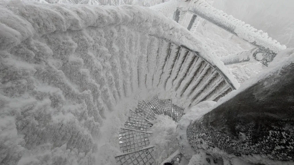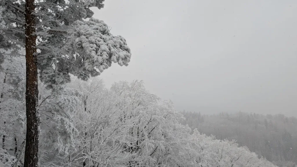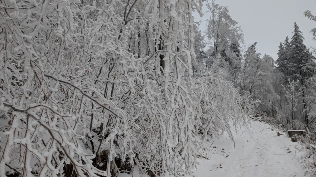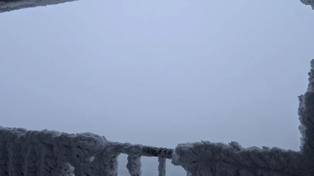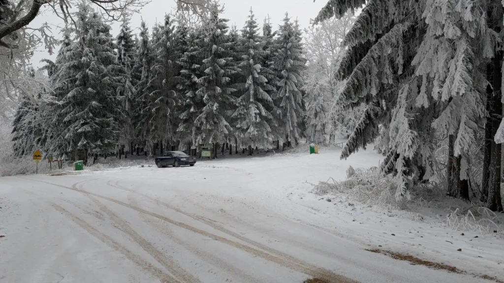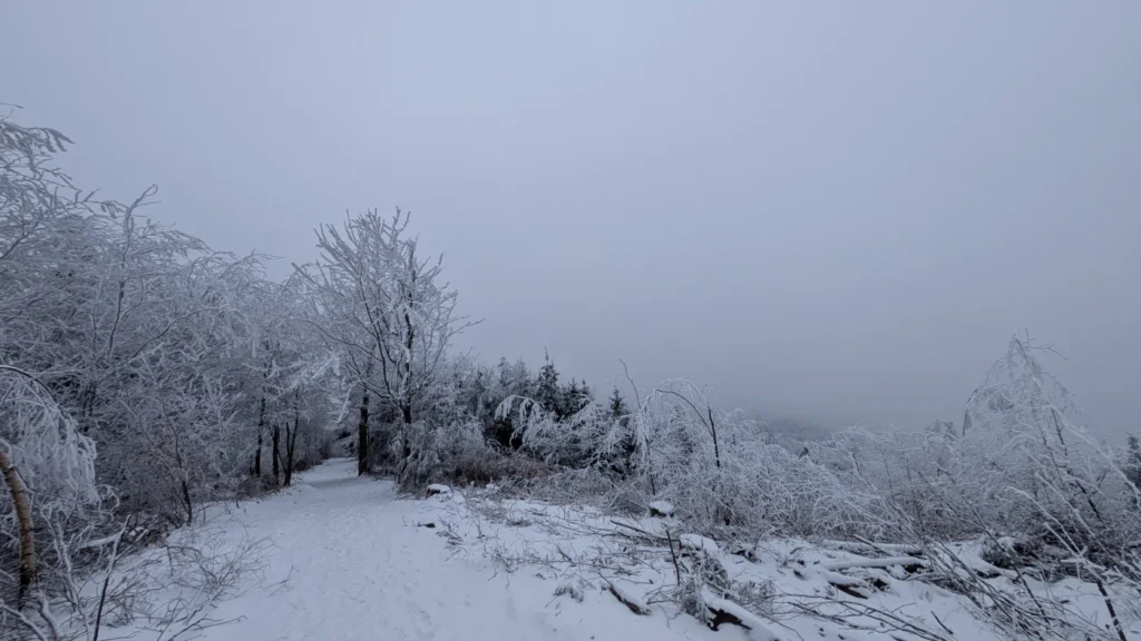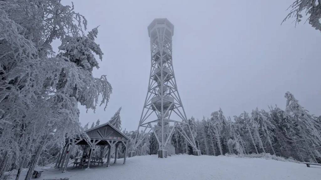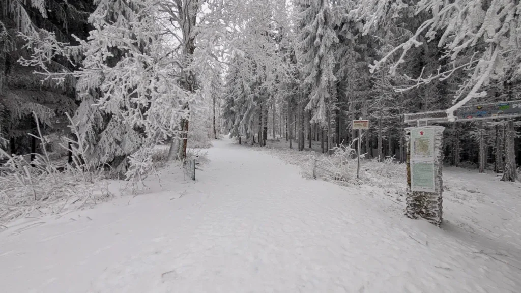 Po krótkiej przerwie i obowiązkowym wejściu na szczyt oblodzonej wieży ruszamy dalej w kierunku Szerokiej Góry. W tym celu musimy żółtym szlakiem do ostatniego skrzyżowania. To stąd będziemy wędrować dalej. W tym miejscu warto zwrócić uwagę na małą nieścisłość. Na mapach ( mapy.com, mapa-turystyczna.pl ) na Szeroką Górę nie prowadzi żadne szlak. W rzeczywistości jednak przy odrobinie szczęścia dostrzeżemy żółte szlakówki które zaprowadzą nas na sam szczyt Szerokiej góry. Ze skrzyżowania na szczyt mamy zaledwie ok 300m.